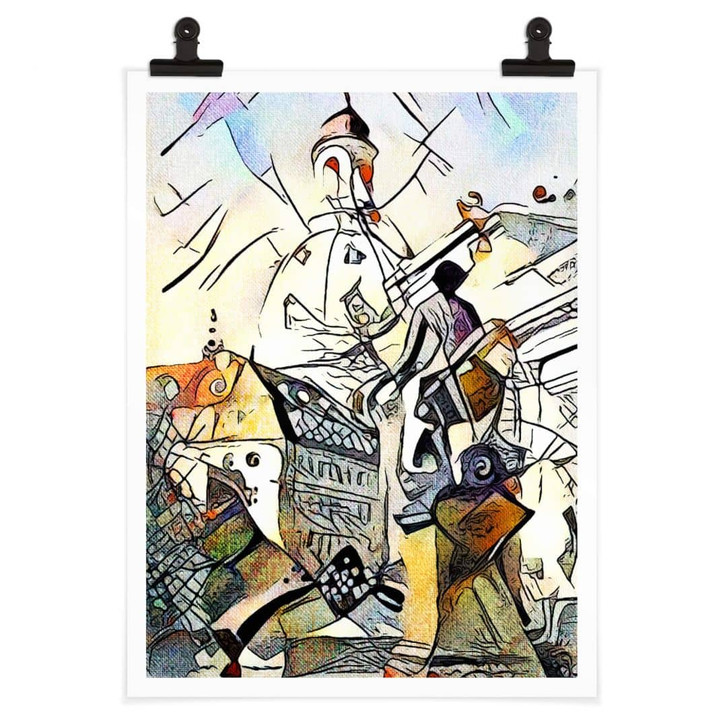 Entdecke den Stil, der zu dir passt, und gestalte ein raffiniertes Wohnambiente! Die Künstlerin Zamart kombiniert eines ihrer Lieblingsfotomotive aus Dresden mit dem unverwechselbaren Stil des russischen Malers Wassily Kandinsky. Es zeigt den „Goldenen Reiter“, das Reiterstandbild des sächsischen Kurfürsten August des Starken, und die Kuppel der Dresdner Frauenkirche. Das Ergebnis ist ein abstraktes und farbenfrohes Kunstwerk, das den Betrachter zweimal hinschauen lässt.