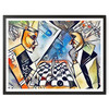 Schach – ein Spiel, das wie kein anderes mit Kunst in Verbindung gebracht wird. Es ist eine bekannte Denksportaufgabe, die Scharfsinn mit Wahnsinn verbindet. Liebhaber dieses Spiels sehen in ihm eine besondere Schönheit, die Fantasie und Kreativität weckt. Für das Gemälde „Two Chess Players“ wählte Zamart die abstrakte, figurative Kunstform und verwendete dafür Tinte und Aquarellfarben, die durch die Linien und Formen strukturiert und wohlgeordnet wirken.