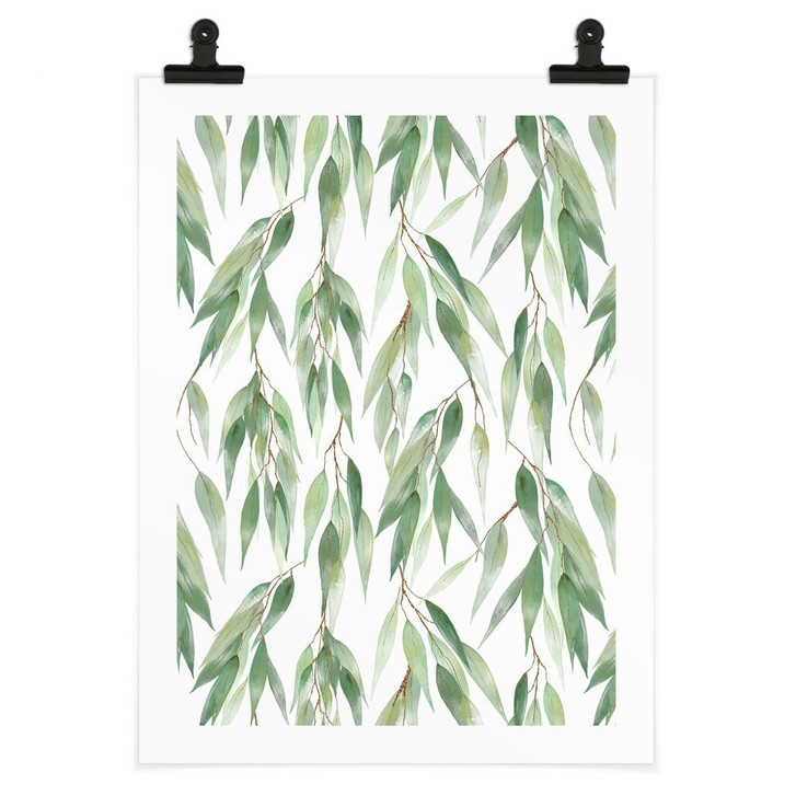 Dieses UN Designs-Poster mit seinem Motiv aus sanft herabhängenden Zweigen und fein gezeichneten Blättern bringt die natürliche Schönheit der Pflanzenwelt auf eine glatte, brillante Oberfläche. Die Blätter in verschiedenen Grüntönen verleihen dem Bild eine lebendige Frische, während die feinen Linien der Zweige dem Motiv eine besondere Leichtigkeit und Dynamik verleihen. Der hochwertige Druck sorgt dafür, dass die Farben besonders klar und intensiv sind und das Motiv auch nach vielen Jahren noch seine Leuchtkraft behält. Jedes Blatt ist detailreich ausgearbeitet und vermittelt dem Betrachter ein Gefühl der Ruhe und Gelassenheit.