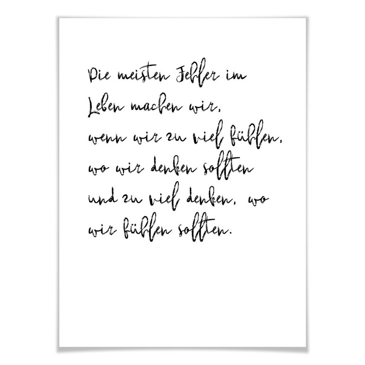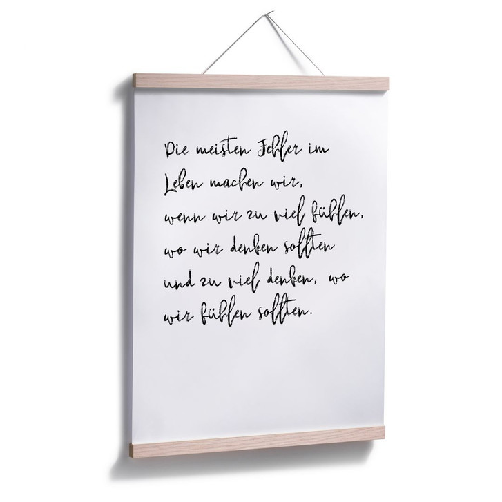 Das Premiumposter „Die meisten Fehler im Leben!“ ist ein schöner Blickfang für Büro und Zuhause. In diesem Spruch steckt etwas Wahres und er sollte beherzigt werden! Es gibt viele verschiedene Möglichkeiten, Poster aufzuhängen, je nach persönlicher Vorliebe. Mit handlichen Klebepads lassen sich Poster schnell und einfach anbringen. Für die Kreativeren unter euch gibt es die Möglichkeit, Poster mit trendigen Washi-Tapes an der Wand zu befestigen. Wer es lieber klassisch und elegant mag, für den sind schöne Holzbilderrahmen genau das Richtige, um sein Poster perfekt in Szene zu setzen.