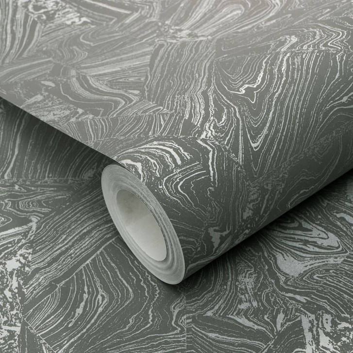 PVC-freie grafische Vliestapete mit Marmoroptik und Metallic-Effekt in grau