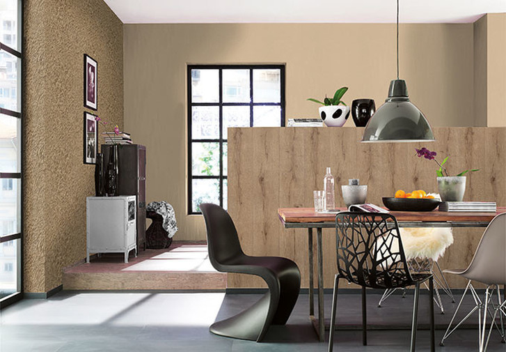 Realistisch nachgebildete rustikale Dielen, die an einer Wand angebracht sind, bringen Gemütlichkeit in den Raum. Die charakteristischen Maserungen verstärken das beeindruckend naturgetreue Bild. Das Design eignet sich für jeden Raum und lässt sich mit jedem Einrichtungsstil kombinieren. Selbst in einer eher puristischen Umgebung mit glatten, hochglänzenden Oberflächen können natürlich wirkende Wände ein gelungener Blickfang sein. Einer der vielen Vorteile der Vliestapete ist ihre einfache Handhabung. Im Gegensatz zu Papiertapeten müssen Vliestapeten nicht eingeweicht werden, sondern können direkt von der Rolle auf die zuvor mit Kleister bestrichene Wandfläche aufgebracht werden. Darüber hinaus sind Vliestapeten äusserst langlebig. Flecken und Schmutz, die frei von Öl und Fett sind, können mit milder Seife und einem weichen Schwamm entfernt werden. Dies und die gute Lichtechtheit verlängern die Lebensdauer der Tapete immens.