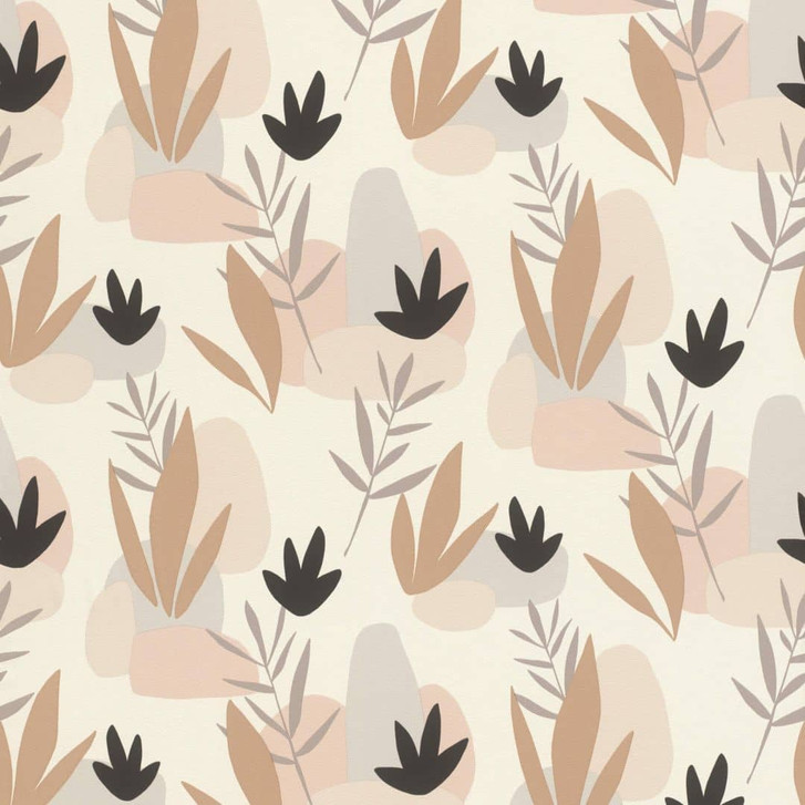 Abstrakt und kreativ werden hier kleine Fels- und Pflanzenformationen in origineller Farbgebung dargestellt. Auf dem weissen Hintergrund mit feiner Struktur finden sich einzelne Elemente in hellen und natürlichen Farben wie Terrakotta, Hellgrau, Beige, Taupe und Pfirsich. Als spannender Kontrast stehen zusätzliche Komponenten in Schwarz zur Verfügung, wodurch eine raffinierte Spannung entsteht.Produktinformationen: