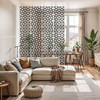 Das Design fügt sich harmonisch in die unterschiedlichsten Einrichtungsstile ein – ob minimalistisch, skandinavisch oder industriell-modern. Die klaren, symmetrischen Formen verleihen dem Raum eine visuelle Ordnung, ohne seine Leichtigkeit zu beeinträchtigen. Die Kombination aus zarten Linien und offenen Flächen lässt das Muster besonders elegant wirken und verleiht der Inneneinrichtung Struktur.