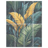Verleihe deinem Wohn- oder Arbeitsbereich mit diesem hochwertigen Acrylglaselement eine faszinierende, tropische Atmosphäre. Das kunstvolle Motiv zeigt eine opulente Komposition aus grossen Palmen- und Bananenblättern in sattem Dunkelgrün, kombiniert mit edlen Gold- und Ockertönen. Die harmonische Farbpalette schafft ein luxuriöses, stilvolles Ambiente und bringt natürliche Eleganz in deine Räume.