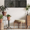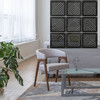 Mit unseren quadratischen Paneelen kannst du ganz einfach eine ästhetische Trennwand schaffen, die in deinem Schlafzimmer, Wohnzimmer oder Büro toll aussehen wird. Der Raumteiler kann als Sichtschutz dienen und für mehr Privatsphäre sorgen. Dies ist besonders in kleinen Wohnungen nützlich, in denen Wohn- und Arbeitsbereich nahe beieinander liegen. Das Berglandschaft-Design ist in schwarzem und braunem MDF, beigem Pappelholz und schwarzem Acrylglas erhältlich.
