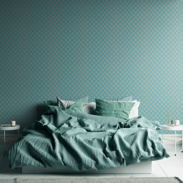 Retro-Tapete Blau Türkis - gepunktete Vliestapete mit Grafik Muster - Strukturtapete
