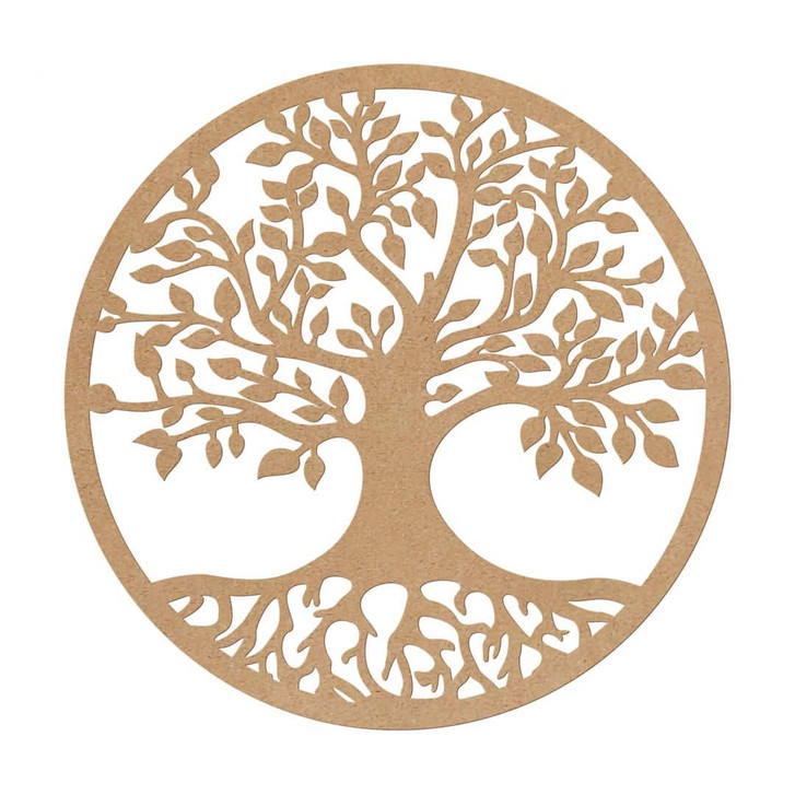 Runde Holzdeko Baum mit Wurzeln - MDF Natur