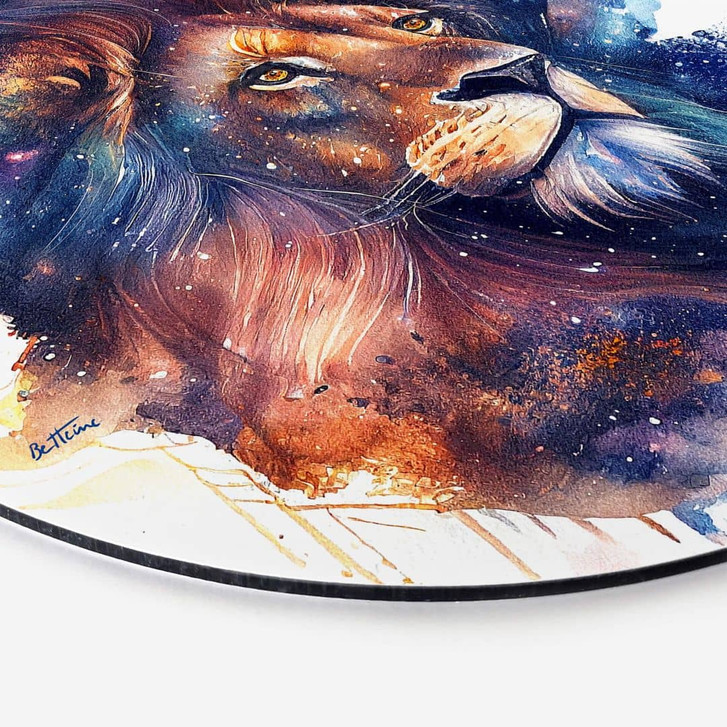 Rundes Wandbild Heine - Mächtiger Löwe im Sternenhimmel - Astro Cruise - Alu-Dibond