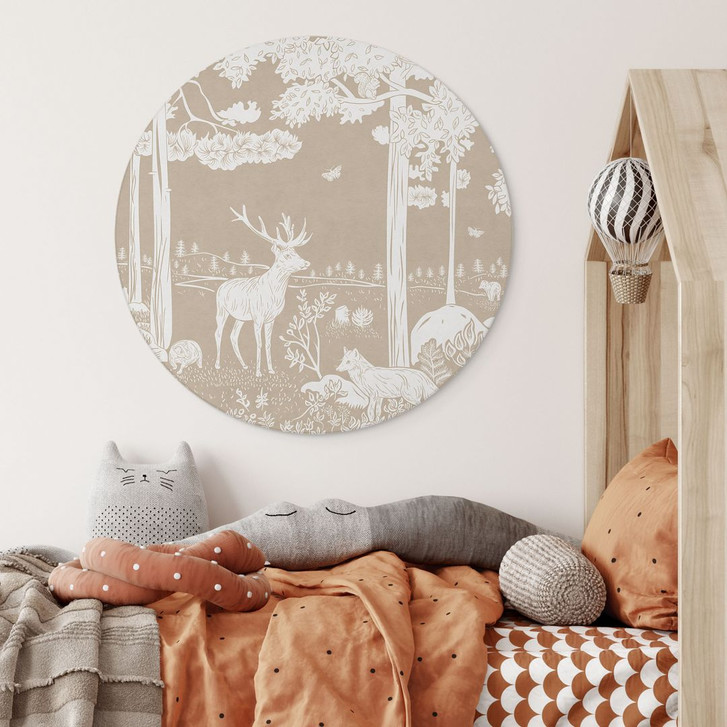Rundes Wandbild Herbstlicher Wald mit Hirschen und Füchsen - Braun - Kikki Belle - Alu-Dibond