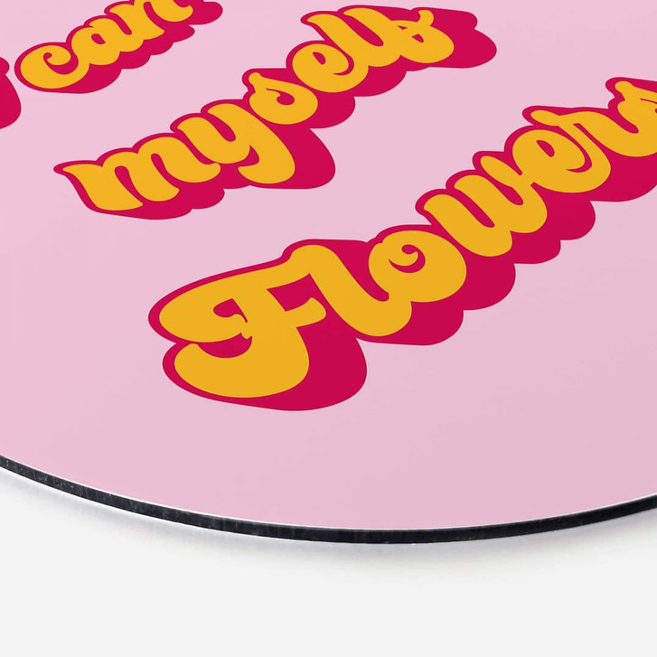 Möchtest du dein Zuhause schnell und einfach verschönern? Wir haben eine grosse Auswahl an runden Wandbildern, die dich glücklich machen werden. Der Spruch „Ich kann mir selbst Blumen kaufen“ ist zu einer Hymne der Selbstliebe und Selbstakzeptanz geworden. Hol dir den Spruch als rundes Wandbild und setze ein Statement! Diese Liebeserklärung an dich selbst mit gelber Retro-Schrift auf pinkem Hintergrund verschönert jede Wand und ist auch eine tolle Geschenkidee für Freunde und Familie.