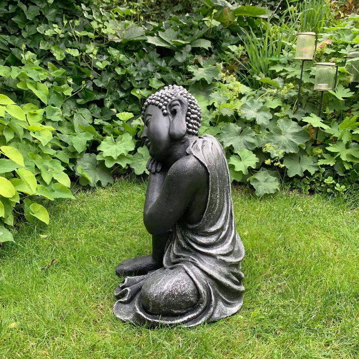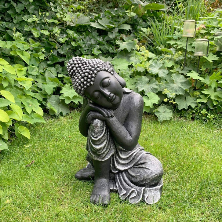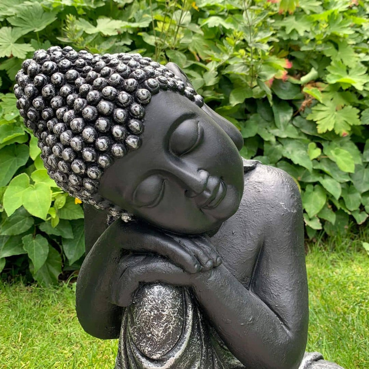 Schlafender Buddha aus Kunststein, schwarz | 34x31x40 cm