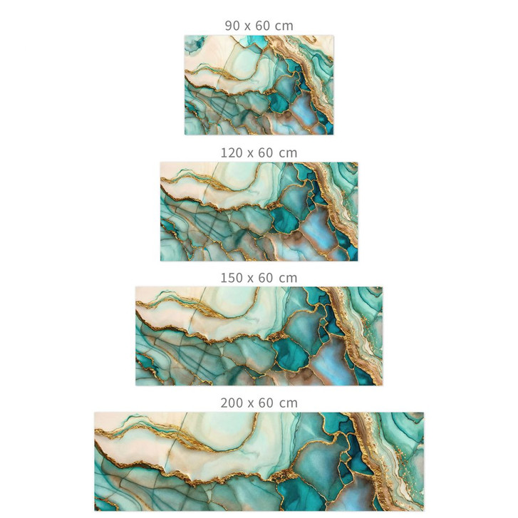 Diese selbstklebende Küchenfolie vereint Eleganz und Funktionalität in einem einzigartigen Design. Die harmonischen Türkistöne und goldenen Highlights erinnern an luxuriösen Marmor und setzen ein faszinierendes Highlight in deiner Küche. Mit ihrem brillanten Farbenspiel und den organischen Strukturen wird Ihre Küchenrückwand zu einem echten Hingucker.