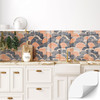 Selbstklebende Küchenrückwand mit Muschelmuster in Orange und Blau