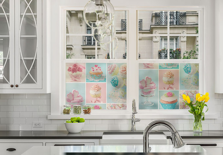 Die Sichtschutzfolie „Cupcake Collage“ ist in verschiedenen Grössen erhältlich.