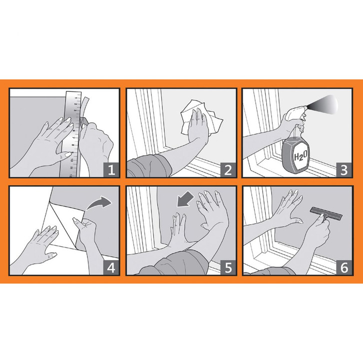 Dekoban® Premium-Fensterfolien erfordern keinen Klebstoff, es wird jedoch empfohlen, während der Anwendung nur eine dünne Wasserschicht mit einem Sprühgerät auf die Glasoberfläche aufzutragen. Die statische Eigenschaft der Folie bleibt auch nach dem Entfernen erhalten, sodass sie mehrfach verwendet werden kann.