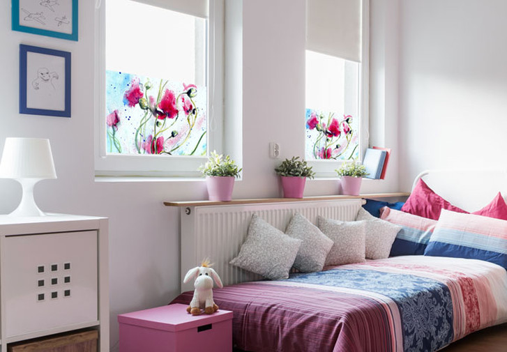 Die Dekorfolie mit dem Aquarellmotiv Mohnblumen ist in verschiedenen Grössen erhältlich.