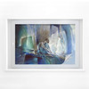 Das malerisch anspruchsvolle Gemälde der zeitgenössischen Künstlerin Annette Schmucker zeigt einen abstrakten Raum in eindrucksvollen blauen Farben.