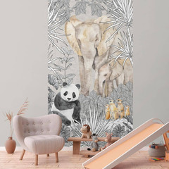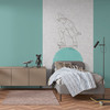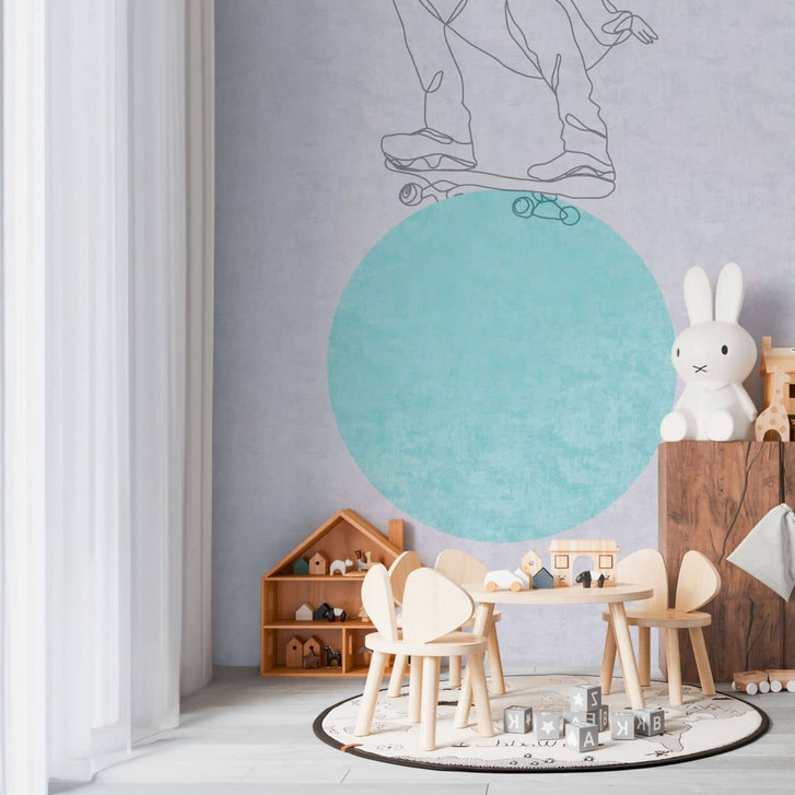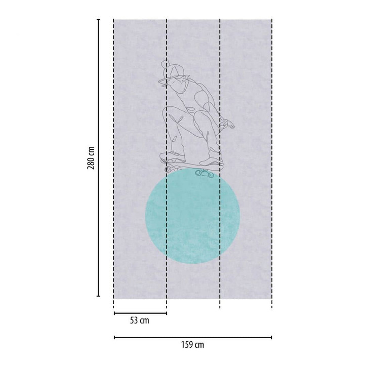 Lilly & Luis - Moderne Fototapete mit stilisierter Skaterfigur und türkisfarbener Kugel. Nicht erweiterbar.