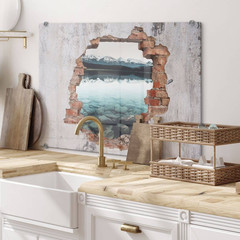 Spritzschutz 3D Holzfenster - Alpenpanorama