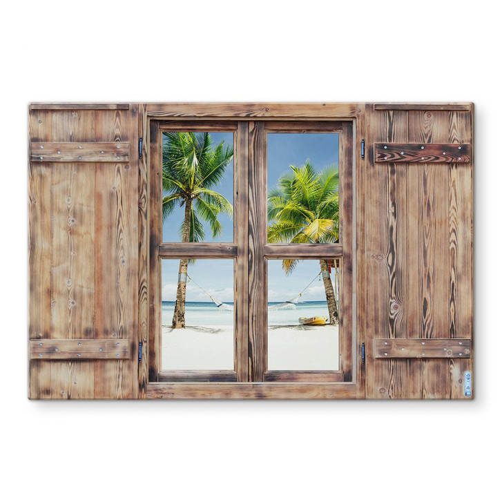 Spritzschutz 3D Holzfenster - Hammock in Paradise