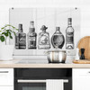 Guten Appetit! Diese Wanddekoration ist perfekt für die Küche oder das Esszimmer und schafft eine charmante Atmosphäre rund um Herd und Tisch. Hier finden Sie und Ihre Lieben einen gemütlichen Ort zum Kochen und Geniessen. Diese Illustration ist ein stilvoller Blickfang. Hier werden hochprozentige Getränke serviert. Die Illustration der fünf Flaschen in Schwarz-Weiss sorgt für gute Laune bei der gemeinsamen Zubereitung des Abendessens. Die transparente Spritzschutzwand ist zudem eine moderne und originelle Alternative zu klassischen Fliesen an der Wand. Sie ist ausserdem viel einfacher anzubringen und erspart somit sogar lästige Renovierungsarbeiten. Unsere Spritzschutzwände bestehen aus 4 mm starkem Einscheibensicherheitsglas. Das hochwertige Glas ist kratzfest, hitzebeständig und abwischbar. Das Motiv wird in hoher Auflösung direkt auf die Rückseite gedruckt und erstrahlt in hervorragender Farbbrillanz. Die Klemmhalterung speziell für den Spritzschutz ist separat bei uns erhältlich, wodurch der Spritzschutz glatt hervorgehoben wird.