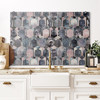 Das Wabenmuster in Blau- und Rosétönen ergibt ein harmonisches Gesamtkunstwerk, das einen stilvollen Blickfang an die Wand zaubert!