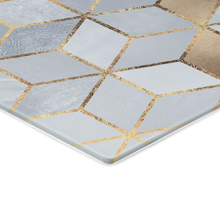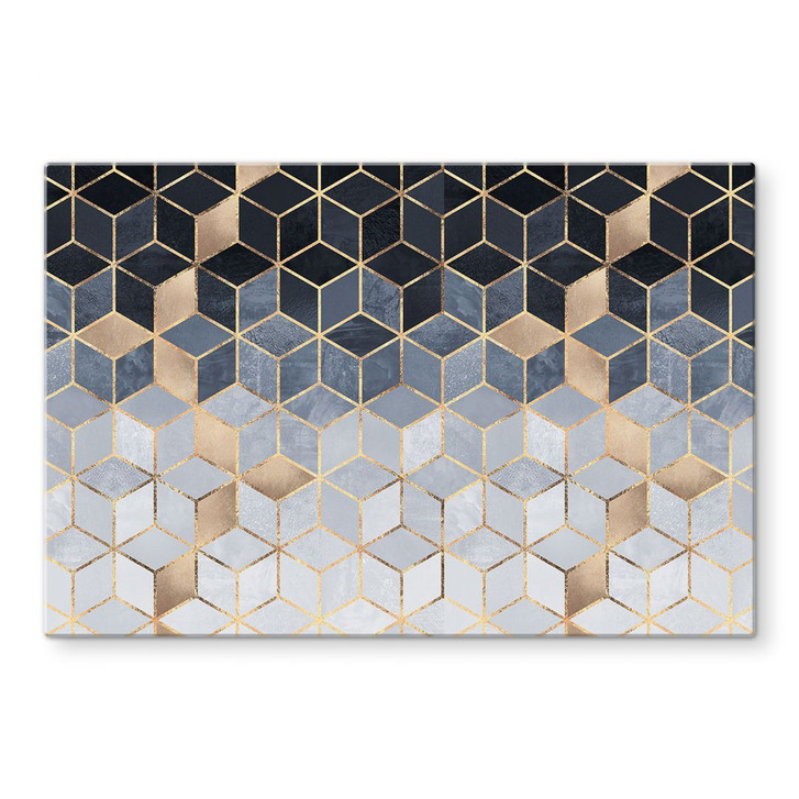 Die geometrischen Formen und Figuren werden durch die kontrastierenden goldfarbenen Flächen in 3D hervorgehoben. Die verschiedenen Blautöne und die goldfarbenen Linien schaffen einen glamourösen Blickfang an jeder Wand! Verschönere deine Räume mit den kreativen und innovativen Designs von Fredriksson!