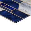 Die geometrischen Formen sind in Blau und Weiss unterteilt. Das trendige Design im skandinavischen Stil verleiht dem Koch- und Essbereich einen stilvollen Look und bringt einen tollen Farbtupfer an die Wand.