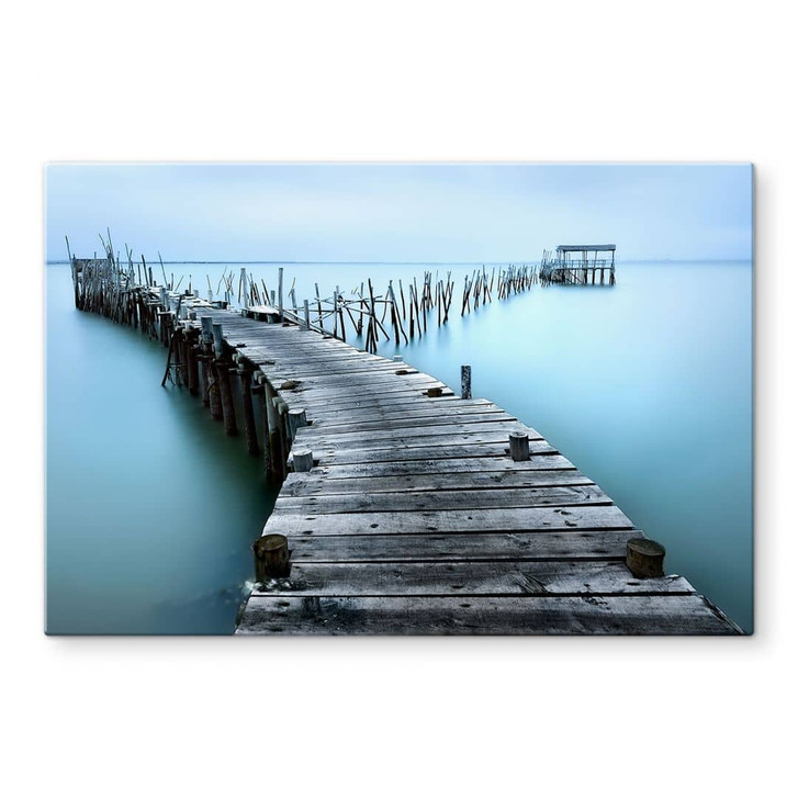 Ruhe und Frieden – spürst du das auch? An einem Ort wie diesem kann man den Kopf frei bekommen und die Seele baumeln lassen. Dieser Ort wirkt sehr geheimnisvoll: ein alter, weiser Holzsteg, mitten im kalten Wasser und völlig verlassen. Und doch wurde er vom Künstler García gefunden und stilvoll als Foto verewigt, mit dem du deine Räume geschmackvoll dekorieren kannst.