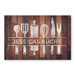 Gib deinen Wunschtext in das Eingabefeld ein. Ist er zu lang, passen wir ihn optisch an. In diesem Fall kann deine Lieferung von der Beispielansicht abweichen. Die Kochutensilien und das Wort „Küche“ können nicht geändert werden.