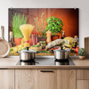 Liebe geht zwar durch den Magen, aber der Weg zum Magen führt über die Augen. Unsere Wanddekorationen für Küchen und Esszimmer machen definitiv Appetit auf mehr. Mit diesem Foto setzt du auf lebendige Farben und schaffst ein harmonisches Wohnerlebnis. Hier wird gekocht, gebrutzelt und gebacken. Der köstliche Duft der frisch zubereiteten Mahlzeit lässt einem das Wasser im Mund zusammenlaufen und den Magen knurren. Mit dieser appetitlichen Küchenrückwand macht das gemeinsame Kochen doppelt so viel Spass. Die farbenfrohe Küchenrückwand schafft eine gemütliche Atmosphäre in Ihrer Küche. Dank der abwaschbaren Materialien ersetzt sie auch die klassischen Fliesen und Kacheln – für eine trendige Küche. Unsere Spritzschutzvorrichtungen bestehen aus erstklassigem 4 mm starkem Einscheibensicherheitsglas. Das Motiv wird in hoher Auflösung direkt auf die Rückseite gedruckt. Auf der Rückseite wird eine nachträgliche Versiegelung aufgetragen, die für langanhaltende Farbbrillanz sorgt. Optional bieten wir dir eine Klemmbefestigung an, die du separat bei uns erwerben kannst.