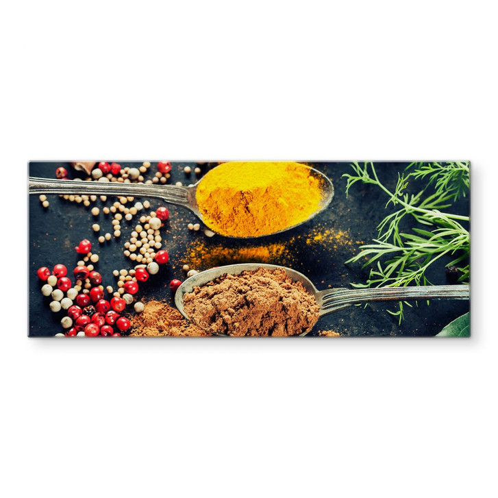 Ob leichte Bio-Küche oder würzige und herzhafte Speisen, du entscheidest, welche Gerichte heute auf dem Speiseplan stehen. Appetit machen diese Zutaten auf jeden Fall und sorgen schon beim Kochen für eine gemütliche Atmosphäre. Das Foto schafft ein freundliches Raumgefühl und erweitert den Blick – lass dich überraschen. Diese Gewürze dürfen in keiner Küche fehlen! Die intensiven Geschmacksträger aus der Welt der Gewürze runden das Essen perfekt ab. Mit diesem ansprechenden Motiv bringen Sie Würze in Ihre Küche oder Ihren Essbereich. Die farbenfrohe Spritzschutzwand ist auch eine moderne und originelle Alternative zu herkömmlichen Wandfliesen. Sie ist zudem viel einfacher anzubringen und erspart somit sogar lästige Renovierungsarbeiten. Unsere Spritzschutzwände bestehen aus erstklassigem 4 mm starkem Einscheibensicherheitsglas. Das Motiv wird in hoher Auflösung direkt auf die Rückseite gedruckt. Auf der Rückseite wird eine nachträgliche Versiegelung aufgetragen, die für eine langanhaltende Farbbrillanz sorgt. Optional bieten wir dir eine Klemmhalterung an, die du ebenfalls bei uns erwerben kannst.