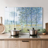 Verleihe deiner Küche mit diesem hochwertigen Druck einen Hauch von Raffinesse und Kunstfertigkeit. Claude Monets impressionistisches Meisterwerk bringt die Schönheit eines sonnigen Frühlingsmorgens in deine Kochumgebung und bietet gleichzeitig praktischen Schutz für deine Wände.