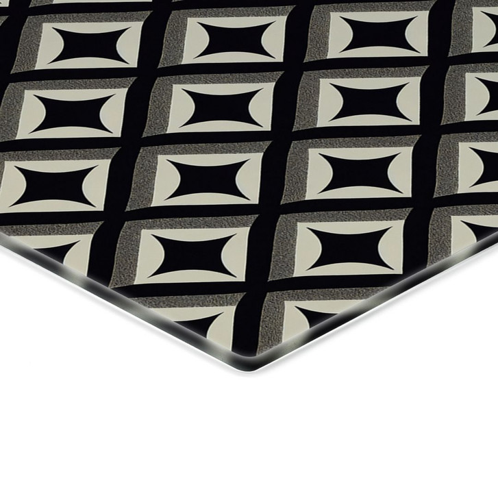 Diese elegante Küchenrückwand in einem schwarz-beigen Ornament-Design schützt nicht nur Ihre Küche, sondern verleiht ihr auch ein modernes, stilvolles Aussehen. Die geometrischen Muster, symmetrisch und klar angeordnet, bringen eine raffinierte Struktur in den Raum. Die Kombination aus kräftigem Schwarz und sanftem Beige schafft ein harmonisches Gesamtbild, das sowohl minimalistische als auch klassische Küchen perfekt ergänzt.