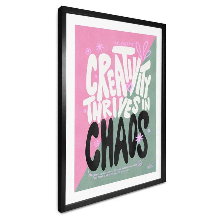 Sprüche und Zitate spiegeln das Bild unserer Gedanken wider. Sie vermitteln Botschaften und Weisheiten, die sich über die Jahre bewährt haben. Dieser witzige Spruch ist ein Highlight für deine Statement-Wand. „Kreativität gedeiht im Chaos“ ist eine humorvolle Aussage für alle kreativen Köpfe, die aus einem Durcheinander etwas Sinnvolles oder Aussergewöhnliches schaffen können. Wenn du dich nicht nur auf die Vernunft, sondern auch auf Intuition und Inspiration verlässt, machst du mit dieser Wandkunst von Bloom alles richtig. Das moderne, frische Design überrascht mit rosa und grünen Farben und strahlt zudem positive Vibes aus. Werde noch heute kreativ mit dem Zitat „Kreativität gedeiht im Chaos“!