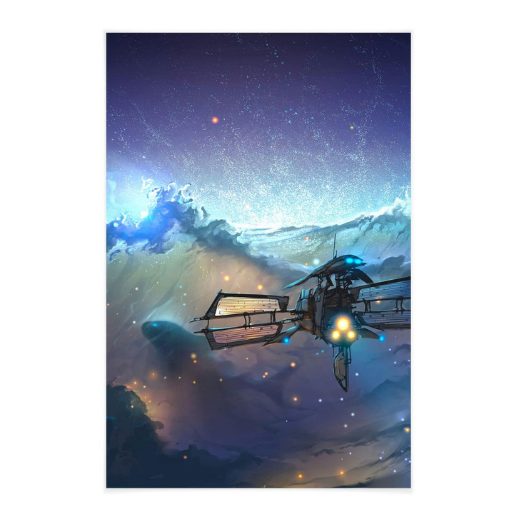 Monotone Wände können mit der Zeit langweilig aussehen. Entdecke unsere kreativen Weltraum-Motive und gestalte deine Lieblingswand mit ausdrucksstarken Kunstdrucken! An einem seltsamen Ort ist ein Flugobjekt unterwegs, um neue Lebensformen zu entdecken. Existieren dort Lebewesen, Licht und Wasser? Der Künstler Alexander Rommel schafft aussergewöhnliche Kunstwerke, die auf den Betrachter geheimnisvoll und geheimnisvoll wirken. Dekoriere mit diesem surrealistischen Bild, das in Blau- und Violetttönen gehalten ist, und verleihe deinen Räumen eine aufregende Note!