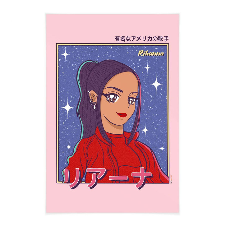 Dekoriere mit diesem Hingucker und schaffe dir einen Ort zum Wohlfühlen! Dieses Porträt im Anime-Stil ist der Sängerin Rihanna gewidmet. Hier siehst du den Popstar mit grossen Manga-Augen und roter Kleidung. Die blauen und rosa Hintergrundfarben bilden einen auffälligen Kontrast. Bekenne dich noch heute als Fan und hänge dir dein Idol als Textilbanner an die Wand! Rafael Gomes ist ein brasilianischer Illustrator, der sich für seine digitalen Werke von berühmten Personen und Filmen inspirieren lässt. Während die Prominenten wie Comicfiguren aussehen, erhalten seine Filmmotive durch abstrakte Elemente eine ganz eigene Note. Lass dich von der Kunst der Popkultur inspirieren!