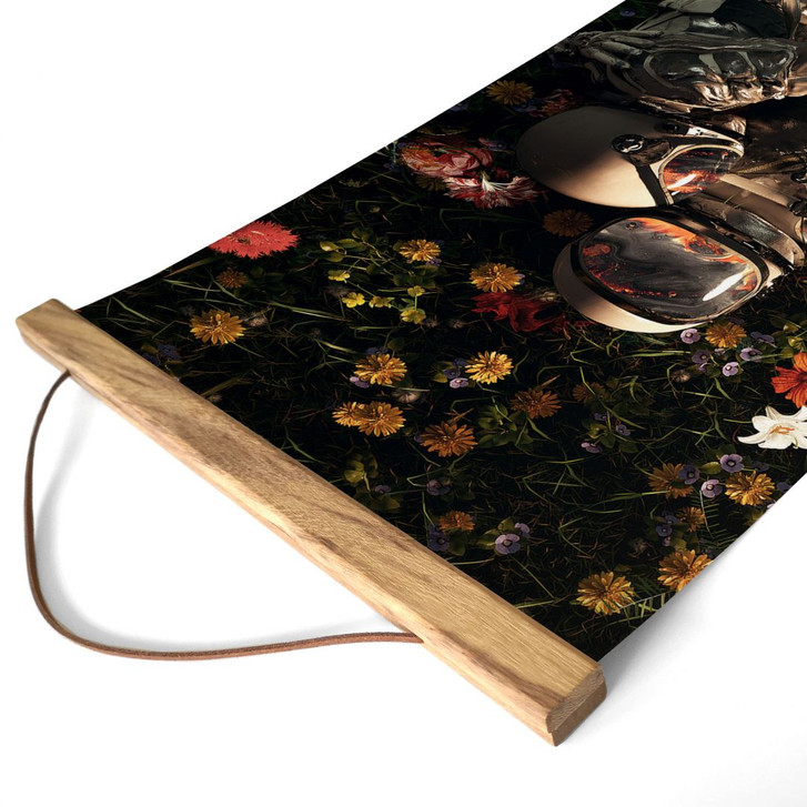 Reise mit diesem Kunstdruck in eine Welt, in der Realität und Träume aufeinander treffen! Das Motiv von Nicebleed zeigt ein Paar Astronauten, die eng umschlungen auf einer bunten Blumenwiese liegen. Dem Künstler ist es gelungen, die Verbindung zwischen Kunst und Kosmos darzustellen und ein kreatives Werk zu schaffen, das zum Träumen anregt.