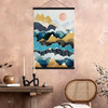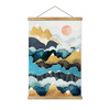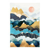 Dieser eindrucksvolle Stoffdruck zeigt eine atemberaubende Berglandschaft, die mit ihren sanften Farbverläufen in Blau-, Gold- und Grüntönen eine beruhigende und zugleich inspirierende Atmosphäre schafft. Die kunstvoll geschichteten Berggipfel, umgeben von sanften Wolken und einem goldenen Sonnenaufgang, vermitteln ein Gefühl von Weite und Harmonie.