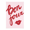 Der Grafikdruck begeistert mit dem Wort „Bonjour“ in roten Farben. Der französische Gruss mit den roten Lippen versprüht Anziehungskraft und Charme. Begrüsse dich und deine Gäste charmant mit dem freundlichen Gruss!