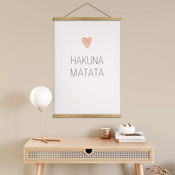 Schaffe mit diesem Wandbild ein angenehmes Raumgefühl! Es ist die perfekte Mischung aus Ästhetik und Harmonie und lädt zum Entspannen und Geniessen ein. Hakuna Matata bedeutet „Alles ist gut“. Der ermutigende Spruch signalisiert Gelassenheit und dass alles gut wird. Verschönere deine Wände mit unseren fantasievollen Sprüchen und Zitaten und peppe deine Lieblingsecke auf!