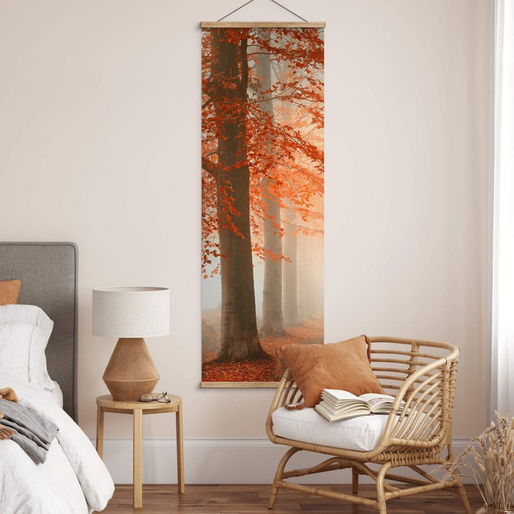Zaubere mit dieser Wanddekoration ein trendiges Ambiente und verpasse deinen Wänden das perfekte Outfit. Die Allee ist mit roten Blättern übersät und zeigt einen Weg, auf dem man gerne spazieren gehen würde. Die kühle Herbstbrise liegt in der Luft und die kalten Monate stehen vor der Tür. Hol dir das herbstliche Fotomotiv für dein Zuhause und peppe deine Wand mit einem romantischen Naturmotiv auf!