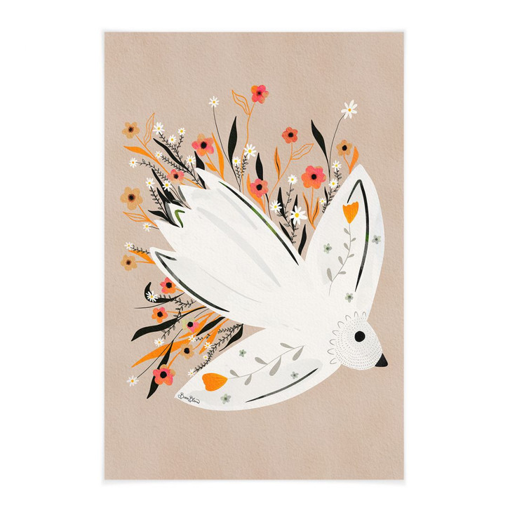 Stoffbild Friedenstaube mit kleinen Blumen - Bloom