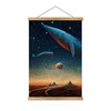 Reise mit zwei Buckelwalen zu den Sternen! Ben Heines Kunstdruck zeigt eine kontrastreiche Landschaft. Während sich unten auf der Erde eine menschenleere Landschaft befindet, fliegen zwei Buckelwale zwischen den Sternen und Planeten am Himmel darüber. Eine surreale Welt, in der du deiner Fantasie freien Lauf lassen kannst. Als künstlerisches Wandbild schafft es eine ganz besondere Atmosphäre im Raum, die zum Träumen und Verweilen einlädt.