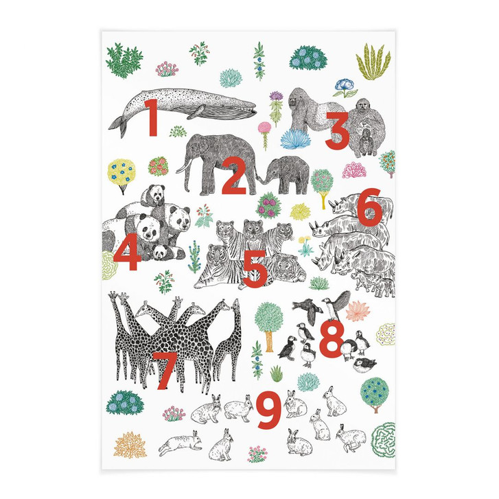 Diese einzigartige Illustration von Kasia Walentynowicz bringt die Tierwelt in all ihrer Pracht an eure Wände. Die neun nummerierten Felder zeigen verschiedene Tierarten, liebevoll und detailliert dargestellt – von Elefanten und Pandas bis hin zu Giraffen und Pinguinen. Jedes Tier ist in eine Umgebung eingebettet, die zum Entdecken und Staunen einlädt.