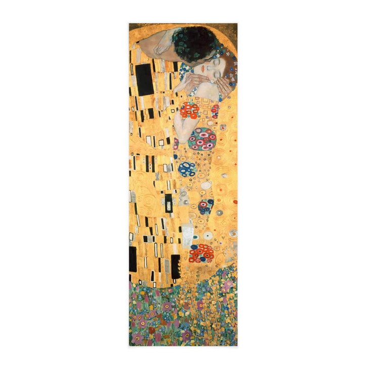 Setze mit dieser Wanddekoration eindrucksvolle Farbakzente an deiner Wand! „Der Kuss“ von Klimt entstand 1907/08 und ist eines seiner bekanntesten Werke. Das Kunstwerk, das ursprünglich „Lovers“ hiess, zeigt einen Mann, der zärtlich die Wange seiner Geliebten streichelt. Während sie kniet, hält er sie fest in seinen Armen. Das romantische Bild veranschaulicht die Themen Liebe und Intimität. Seine Körperlichkeit wird durch die abstrakten Ornamente aufgehoben und ist stark von der goldenen Farbe beeinflusst. Der Maler Gustav Klimt gilt als einer der bedeutendsten Maler des Jugendstils und war Mitbegründer der Wiener Secession. In seiner „Goldenen Periode“ schuf Klimt eine Reihe von Gemälden, die mit der prächtigen Farbe Gold gemalt wurden. Das Original hängt im Museum Schloss Belvedere in Wien.