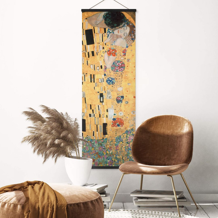 Hänge dir diese Wandkunst als Stoffbanner an die Wand! Mit diesem textilen Wandbild gelingt dir ein extravaganter Look. Das Motiv aus unserer Themenserie Romantik & Liebe und Kunst harmoniert wunderbar mit dem feinen Polyestergewebe. Zusammen ergeben sie ein einzigartiges Kunstwerk. Optional kannst du die passende Holzleiste dazu bestellen.