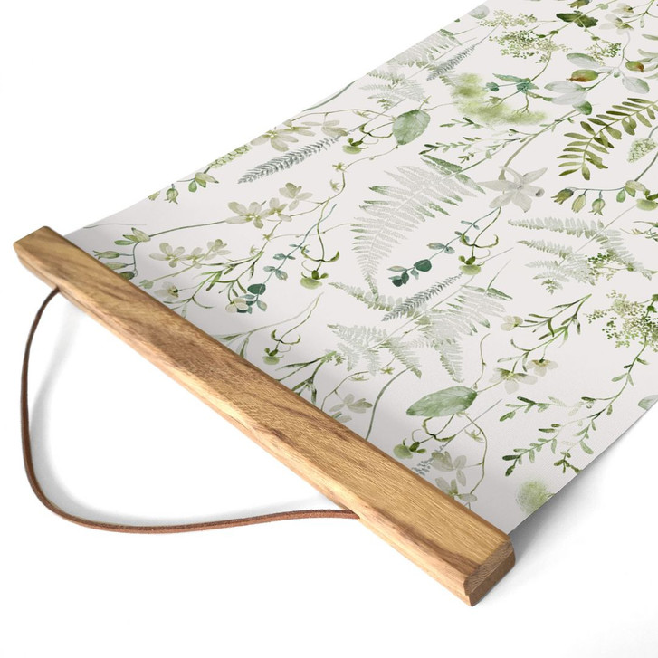 Das eigene Zuhause ist ein Ort des Wohlfühlens und der Entspannung. Mit diesem Textilbanner gestalten Sie Ihre Wand kreativ und gemütlich. Dekorieren Sie mit dem Pflanzenwandbild und schaffen Sie eine gemütliche Atmosphäre im natürlichen Stil! Die botanische Illustration von UN Designs zeigt grüne Blätter, Kräuter und Gräser aus Wald und Wiese. Das Motiv ist eine Hommage an die Natur und besticht durch sein minimalistisches Design. Einfach aufhängen und wohlfühlen – mit diesem Textilbild in Grün und Weiss schaffst du im Handumdrehen eine stylische Wohlfühlwand. Dank der zusätzlich erhältlichen Holzmagnetleiste ist das Aufhängen des Banners ein Kinderspiel.