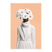 Treechild-Kunstdruck: Dame in Weiss mit Blumen auf pfirsichfarbenem Hintergrund